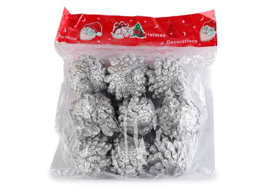 Dekorační šišky můžete díky poutku pověsit na stromeček, věnce nebo větvičky ve váze. Jsou přírodní, doplněné metalickou barvou, která jim dodává elegantní vzhled.