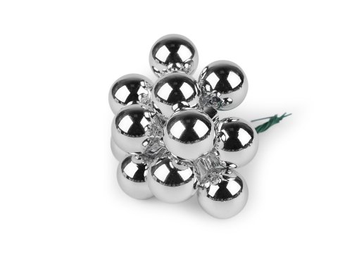Vánoční skleněná baňka na drátku Ø2 cm - mat a lesk - stříbrná lesk (12 ks)