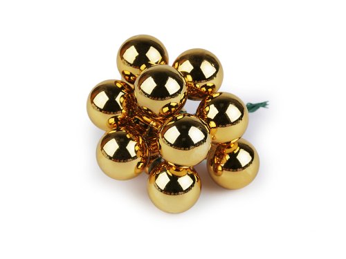 Vánoční skleněná baňka na drátku Ø2 cm - mat a lesk - zlatá lesk (12 ks)