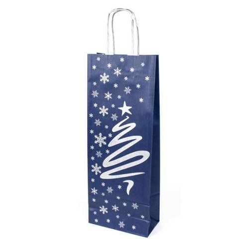Modrá dárková taška s motivem bílého stromečku a hvězd