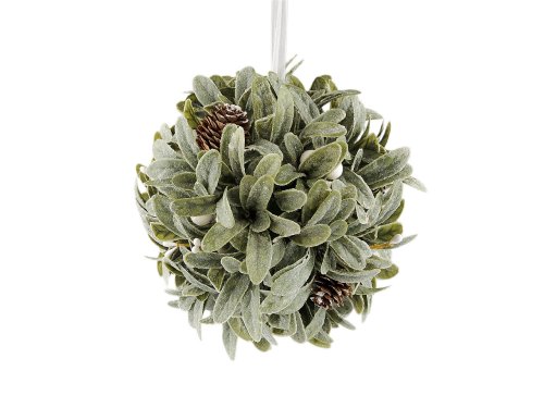 Umělá koule jmelí se hodí jak do moderně, tak i tradičně zařízených interiérů. Vyniká poutavým vzhledem a zpracováním. Je doplněná malými přírodními šiškami a pokrytá jemnými glitry, které působí jako námraza. Kouli můžete nejen zavěsit do prostoru, na lustr, dřevěný trám, dveře apod., ale také vynikne jako dominanta sváteční tabule.