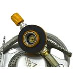 Přívodní hadici jednoduše našroubujete ke kartuši s propan-butanem. Ta musí splňovat normu EN 417 a musí mít samotěsnící ventil s připojovacím závitem 7/16”. Pro pohodlné a rychlé použití slouží piezoelektrické zapalování. Průtok plynu si můžete regulovat podle potřeby.