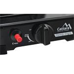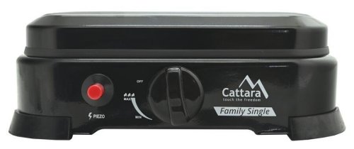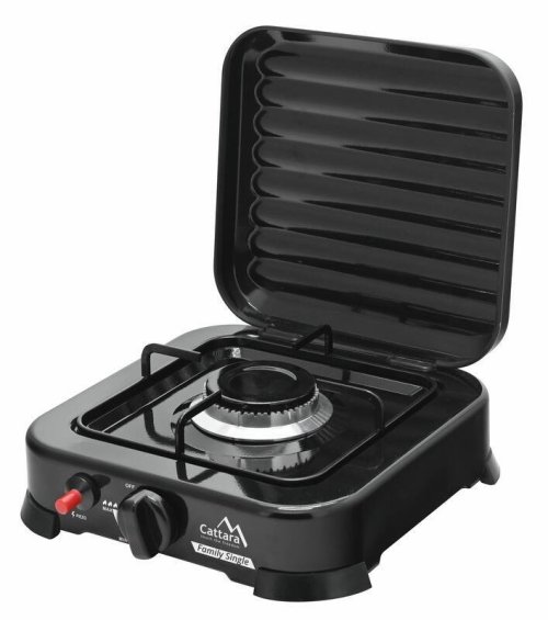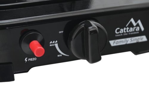 Plynový vařič Cattara Traveler FAMILY SINGLE s odolnou celokovou konstrukcí využijete pro vaření a ohřívání jídel v kempu nebo venku na zahradě. Snadno se obsluhuje díky piezoelektrickému zapalování a přesné regulaci plamene. Vařič připojíte na zadní straně k nádobě s plynem. Ve vrchní části najdete sklápěcí víko, které chrání plamen proti větru. V případě potřeby ho můžete kdykoliv sejmout.