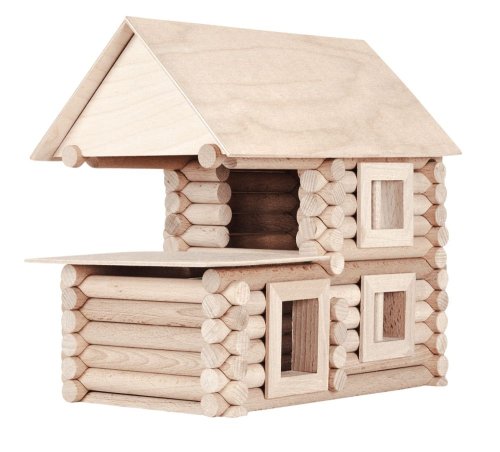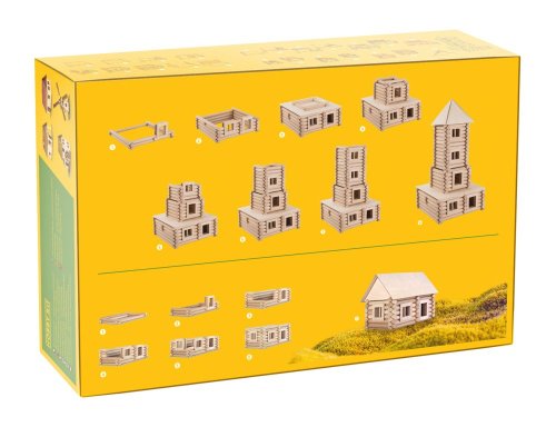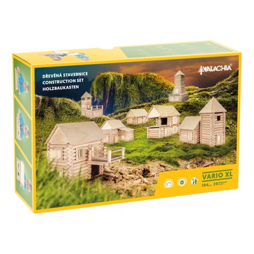 Stavebnice z masivního bukového dřeva ( prům. 15 mm ). Lze ji skládat i rozkládat. Z této stavebnice postavíte mnoho variant staveb. Ve stavebnicích WALACHIA® naleznete vše potřebné k sestavení. Jsou zde uloženy dřevěné hranolky o průřezu 9x9mm daných délek ke stavbě roubených stěn, díly na štíty a střechy, kartonové výseky oken a dveří i papírové potisky, plochy štítů, střech, stříšek, dveří, oken a dlažeb, folie oken a brusný papír na opracování dřevěných dílů ( kvalita ploch však opracování potřebuje minimálně ). Součástí stavebnice je podrobný schematický montážní plán. Počet dílů: 184.
