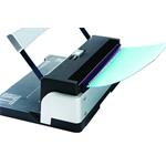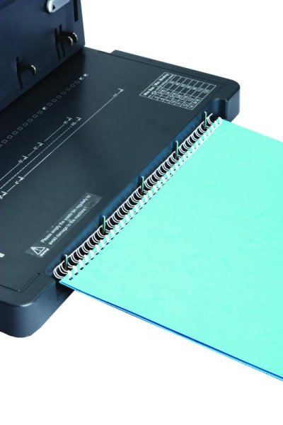 Elegantní kancelářský vázací stroj usnadní výrobu publikací s kovovými hřbety. Je vybavený pákou pro děrování a roztažení kroužku, měřidlem velikosti hřbetu a pěti vyřaditelnými noži. Najednou prosekne až 34 otvorů do maximálního počtu 15 listů. Bez problémů sváže až 120 listů dokumentu.