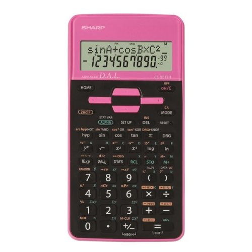 Vědecká kalkulačka Sharp EL-531TH s 272 funkcemi v růžovém barevném provedení Velký 10místný a dvouřádkový displej Funkce D, A, L (přímá algebraická logika) Speciální výpočty s konstantou a zřetězení …