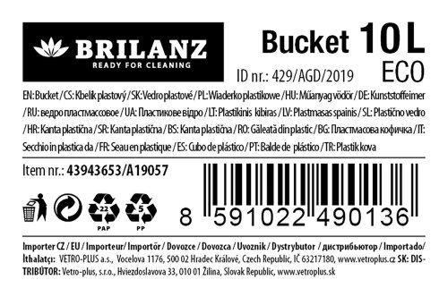 Plastový ECO kbelík Brilanz z recyklovaného plastu, je šikovný pomocník při úklidu domácnosti. Dodáván ve 2 dekorech.