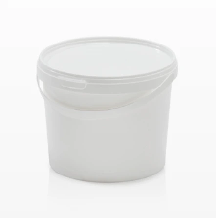 Plastový bílý kbelík s víkem s pojistkou a uchem pro přenášení. Vhodné pro skladování pevných a kapalných látek. Vyrobeno z polypropylenu (PP) a mají ve většině případů originální uzavírání (pojistku na otevření). Objem 3300 ml, průměr 19.8 cm a výška 15.7 cm. Vhodné pro styk s potravinami. EAN 0000019448008