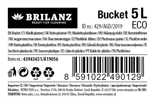 Plastový ECO kbelík Brilanz z recyklovaného plastu, je šikovný pomocník při úklidu domácnosti. Dodáván ve 3 dekorech.