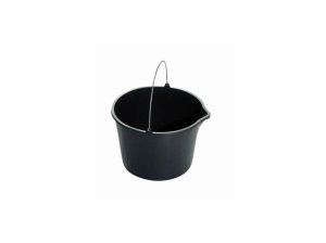 Plastové vědro s nálevkou s kovovým držadlem, o objemu 16 l, vhodné pro použití na zahradě nebo na stavbě.