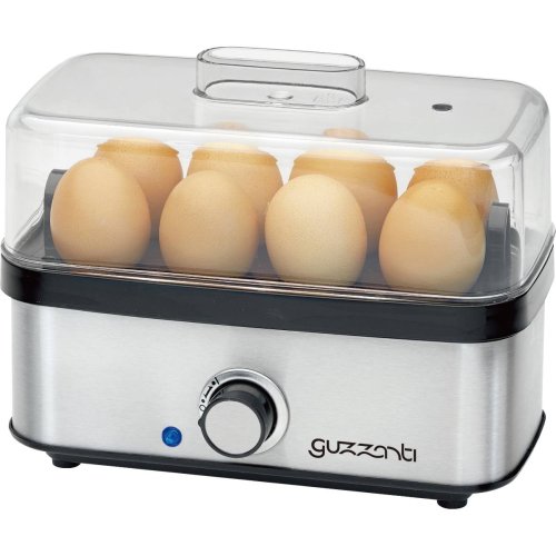 Vejcovar Guzzanti GZ 608 Uvaří až 8 vajec ve skořápce na tvrdo, středně nebo na měkko Připraví i omeletu v samostatném vyjímatelném nástavci Kvalitní nerezové provedení Otočný vypínač a světelná kontrolka Zvukový signál ukončení provozu Odměrka s hrote.