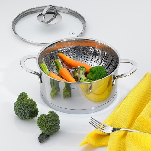 • nerezový pařák na knedlíky od německé značky KELA- Průměr: 23 cm- Materiál: nerezová ocel 18/10- Funkce: Skládací.