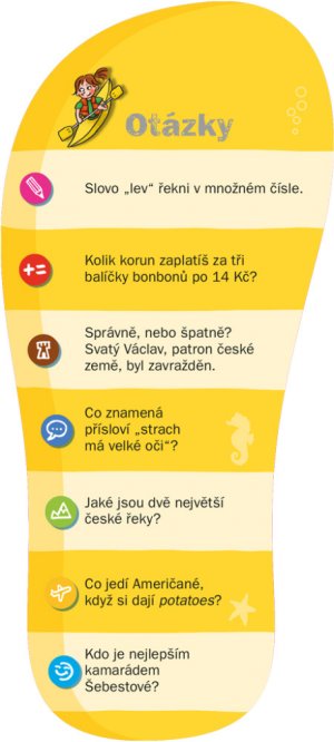 Čtyři knížky kvízů pro děti ve věku 6–10 let obsahující přehledně řazené otázky a odpovědi mají opravdu široký tematický záběr: jazyky, počty, přírodopis, zeměpis, dějepis… Vše samozřejmě vždy přizpůsobené věku, pro který je daný titul určen.