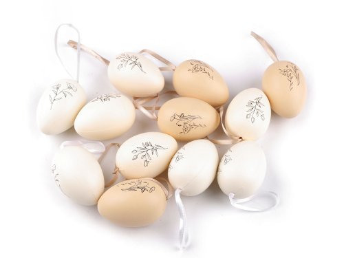 Velikonoční vajíčka v přírodních barvách vám ozdobí věnce, větvičky ve váze a jiné jarní dekorace a aranžmá. Mají poutko ze saténové stuhy. Potisk květin je oboustranný.