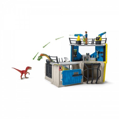 TÝM DINO, skládající se ze tří bratří Colby MAXX, LUIS a FLYNN, je na cestě k odhalení tajemství! Velká výzkumná dinosauří stanice od Schleich® nabízí spoustu dobrodružství a zábavy při hře! Hluboko v amazonské džungli nabízí skrytá stanice vše, co je potřeba k výzkumu posledních žijících dinosaurů. Vůdce MAXX má na Velké výzkumné stanici Schleich® Dinosaurs hodně co dělat. Kromě velitelského střediska má stanice také vyhlídkovou plošinu s výkyvnou sedlovou střechou a jeřábem. Pod nimi je karanténa pro nově zajaté dinosaury. První vyšetření je možné provést hned tady a poté mohou být dinosauři propuštěni do uzavřeného prostoru přes poklop. Ach ne! Velociraptor unikl! Dokáže to MAXX chytit znovu? Dinosauři a výzkumník Maxx jsou k dispozici pouze v této sadě! Ideální pro děti ve věku 4-10 let. Figurky mají pohyblivá ramena a nohy. Dělo dokáže vystřelit. S otočným lanovým navijákem. Plotové prvky s odlamovací funkcí. Tato sada obsahuje 1x Velociraptor, 1x Brachiosaurus, 1x výzkumník Maxx, 1x budova, 1x ovládací panel, 5x plotové prvky, 1x vstupní brána, 2x žebříky, 1x dělo, 4x projektily, 1x jeřáb s lanovým navijákem, 1x zaměstnanecká zbraň, 1x síť, 1x kazeta na projektily, 1x satelit, 1x sledovací kamera, 1x mobilní telefon, 1x notebook, 1x nůž, 1x dalekohled, 1x hliníková krabička, 1x návnada, 1x listy akátu, 1x klobouk, 1x nálepka. Objevte celý svět Schleich® Dinosaurs a vzrušující dobrodružství bratří Colby na www.schleich-dinosaurs.com. Rozměr balení: 49 x 10,5 x 34,5 cm