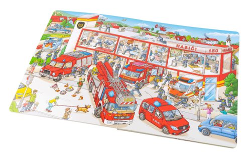 Rychle si navlékli výstroj, nasadili přilby a už se řítí se zapnutou houkačkou k hořícímu domu. Rychle připravit dlouhý hasičský žebřík a stříkačky a hasíme! Je třeba vyprostit z plamenů nešťastníky, kteří nestačili včas utéct před ohněm a zůstali uvězněni v domě. To je také práce hasičů: odvážně se vrhají do plamenů, aby před požárem zachránili všechno živé. Detailní ilustrace v další z řady velkých obrázkových knih seznámí malé čtenáře s rozmanitou prací hasiče i s každodenním životem na stanici. Stačí se jen ponořit do barevného světa obrázků a pozorně sledovat.