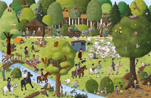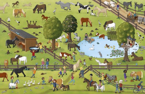 V téhle velké obrázkové knížce prožijete úžasný den mezi koni a poníky. Na velkoformátových ilustracích můžete tyto krásné a ušlechtilé tvory obdivovat. Nahlédnete do každodenního života na koňské farmě, vyrazíte na projížďku, budete fandit na dostizích nebo sledovat hřebce, klisny a hříbátka na pastvě. Poznáte, co všechno obnáší péče o tato zvířata, co mají ráda nebo při jakých činnostech mohou člověku pomáhat. Některé postavičky a zvířátka můžete hledat na každé dvojstránce znovu a znovu a sledovat jejich příběhy. Je to docela fuška, ale hlavně velká zábava!