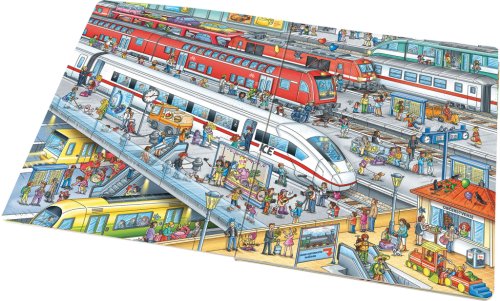Tohle velkoformátové obrázkové leporelo ocení především fanoušci vlakové dopravy. Do světa lokomotiv, vagonů, kolejnic a nádraží se podívají velmi zblízka na úžasných detailních ilustracích. Seznámí se s těmi, kdo na železnici pracují, s cestujícími se vydají na fascinující výlet historickým vláčkem nebo nejmodernějším rychlíkem. Pojedou dnem i nocí, profrčí tunely i mosty. Poznají čilý ruch velkých nádraží i kouzlo malých venkovských stanic… A když se budou dobře dívat, objeví některé hrdiny na každém obrázku v knížce, a tak s nimi mohou prožívat jejich příběhy.