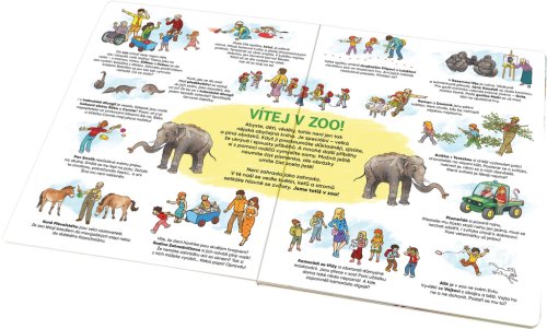 Prozkoumáte-li tuhle speciální knížku plnou krásných, detailně propracovaných celostránkových ilustrací důkladněji, zjistíte, že ukrývá spousty příběhů. Ty se odehrávají nejen na jednotlivých stranách, ale i v průběhu celé knihy. A mnohé další si děti jistě vymyslí samy! Díky kreativní práci s knížkou jsou vedeny k přemýšlení o tom, co "čtou", rozvíjejí svou slovní zásobu, předčtenářské dovednosti a rovněž si tříbí paměť, pozornost a logické myšlení. Velká obrázková knížka ZOO Praha pro malé vypravěče vznikla ve spolupráci s pražskou zoo a malí návštěvníci v ní poznají jednotlivé expozice, místní zvířecí obyvatele i personál, který o ně pečuje.