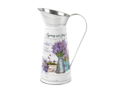 Tato plechová konev s motivem levandule přinese do vašeho prostoru svěží a venkovský vzhled. Perfektní do zahrady nebo jako stylový doplněk na terasu. Její rozměry jsou 220x140x300mm.
