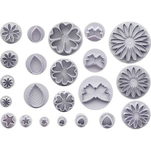 Sada pístových vykrajovátek na květiny a listy nebo motýla z marcipánu či fondánu.