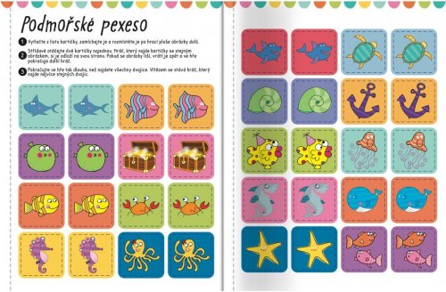 Ponoř se pod hladinu mezi rozverné žraloky! V této knížce plné aktivit a her na tebe čeká spousta úkolů a výzev. Spojuj stejné živočichy, hledej rozdíly, procvič si psaní a počítání či pomoz žralokovi najít cestu za kamarádem. Dolepuj samolepky, vybarvuj obrázky a doplňuj! Tento sešit s roztomilými samolepkami a vytlačovacím podmořským pexesem ti zajistí plno zábavy!