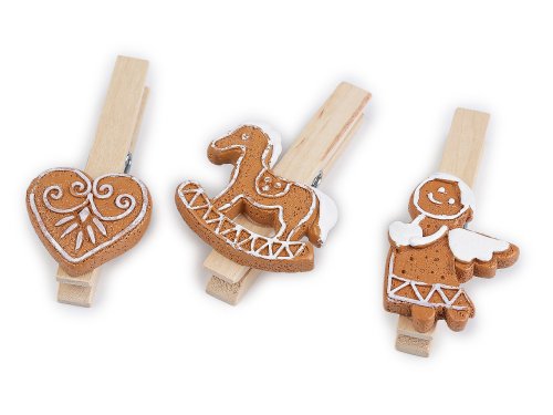 Sada tří vánočních kolíčků s motivem perníčků je vhodná pro různé dekorativní účely. Kolíčky stylově ozdobí vánoční dárky, pytlíky, tašky nebo květináče a květinové vazby.