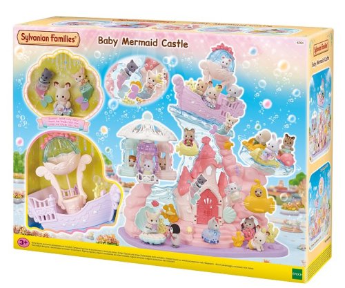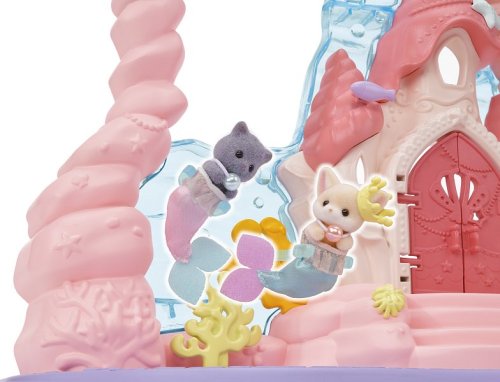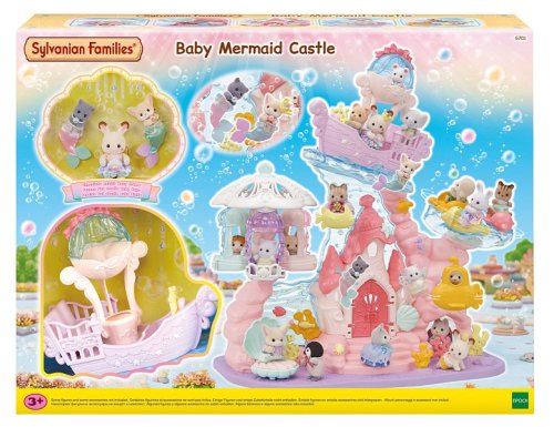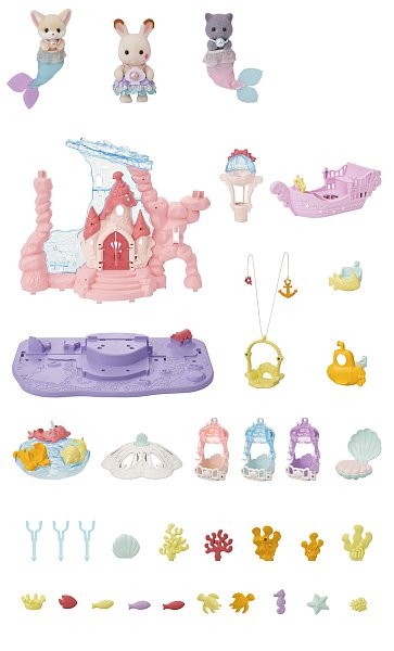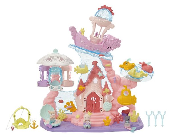 Objevte nádherný podmořský palác mořských víl, kde čeká spousta atrakcí a tři roztomilá miminka v kostýmech mořských víl. Sada přináší jedinečnou kombinaci hravosti, fantazie a kouzelné atmosféry oceánu. Co všechno zde najdete? Obsahuje kolotoč „Aqua-Go-Round“, houpačky ve tvaru medúz a spoustu dalších atrakcí, do kterých mohou miminka a kolébková miminka nasednout. Loď snů, kterou lze vyjmout a hrát si s ní samostatně. Vhodné také jako výstavní kousek – místo až pro 50 miminek. Součástí balení jsou i tři figurky v kouzelných outfitech: Crème miminko čokoládového králíčka, Blake miminko perské kočky do kolébky a Kaya miminko fenka do kolébky. Hraní s figurkami Sylvanian Families rozvíjí kreativitu a učí emoce prostřednictvím vytváření a vyprávění příběhů na základě každodenních zkušeností a pozorování světa. Vyznačují se nejvyšší kvalitou a výjimečným důrazem na detaily. Figurky Sylvanian Families mají pohyblivou hlavu. Oblečení je vyrobeno tak, aby se dalo opakovaně svlékat a oblékat. Baleno v krabičce. Rozměry balení: 35 x 47 x 14 cm. Věk: 3+