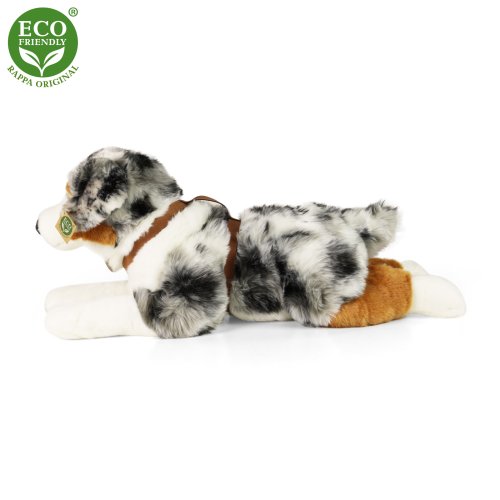 Plyšový pes australský ovčák ležící o velikosti 61 cm je ručně ušitý z vysoce kvalitního jemného plyše, a díky tomu vypadá jako živý. Tento plyšový kousek je ideálním dárkem pro všechny milovníky heboučkých plyšáků. Je součástí exkluzivní kolekce plyšových hraček značky RAPPA. Hlavní vlastnosti: realistické zvířátkoruční zpracovánívysoce kvalitní plyšECO-FRIENDLY výplň   Co to vlastně ECO‑FRIENDLY znamená? Výplň plyšové hračky je vyrobena z recyklovaných PET lahví. Tento materiál je zcela bezpečný, na omak nerozeznatelný od standardní výplně a plně atestovaný pro bezpečnost i těch nejmenších. Rozhodli jsme se jít zelenou cestou co nejméně zatěžující životní prostředí – cestou ECO‑FRIENDLY.