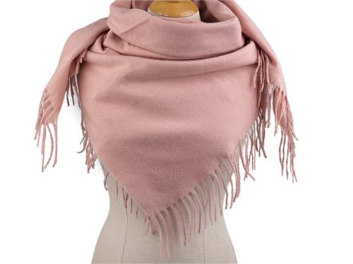 Velký teplý šátek / pléd s třásněmi, jenobarevný, káro 100x105 cm - pudrová jednobarevná