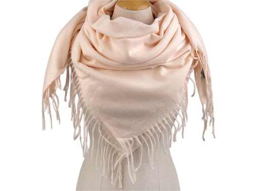 Velký teplý šátek / pléd s třásněmi, jenobarevný, káro 100x105 cm - pudrová světlá jednobarevná