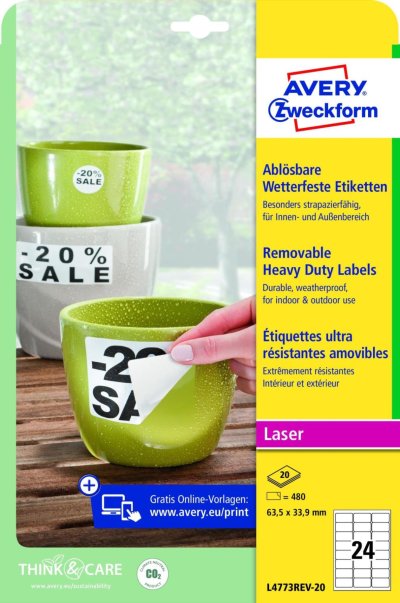 • Odnímatelné velmi odolné polyesterové etikety do náročných venkovních podmínek