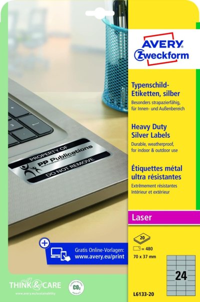 Velmi odolné etikety Avery, 70 x 37 mm, stříbrné