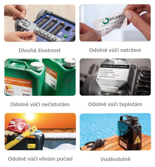 • Ideální na trvalé a dlouhodobé značení, vnitřní i venkovní označování předmětů, výrobků, majetku, skladových regálů, palet atd.