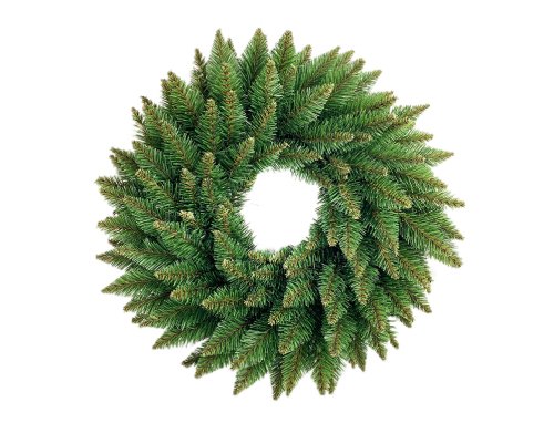 Vánoční vazba v podobě věnce, z umělých větviček. Věrně napodobuje pravé jehličí. V přírodní vazbě bez přízdob. Vhodná pro vánoční dekoraci v bytě, na vchodových dveřích atp. Rozměry: průměr 44 cm. Barva: zelená.