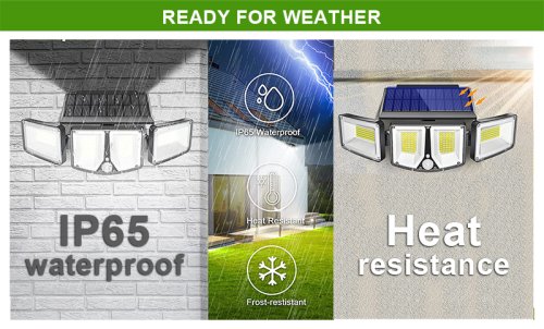 Baterie v solárním světle poskytuje dostatečný výkon pro celonoční osvětlení. Doba svitu záleží na intenzitě světla. Podle vybraného světelného režimu vám LED světlo vydrží svítit 8-12 hodin. Vestavěný pohybový senzor detekuje pohyb v rozmezí od 3 do 5 m v pozorovacím úhlu 120° a zároveň dokáže rozpoznat falešný pohyb (pohyb větví, vítr, atd.)