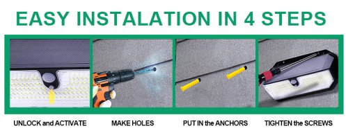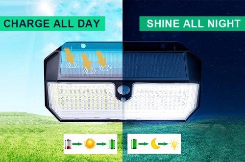 Baterie v solárním světle poskytuje dostatečný výkon pro celonoční osvětlení. Doba svitu záleží na intenzitě světla. Podle vybraného světelného režimu vám LED světlo vydrží svítit 8-12 hodin. Vestavěný pohybový senzor detekuje pohyb v rozmezí od 3 do 5 m v pozorovacím úhlu 120° a zároveň dokáže rozpoznat falešný pohyb (pohyb větví, vítr, atd.)