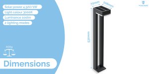 Venkovní solární LED světlo Viking SR07 Hledáte ideální osvětlení pro váš venkovní prostor? Venkovní solární LED světlo Viking SR07 je perfektní volbou, která spojuje moderní design, vysokou účinnost a dlouhou životnost. Toto sloupové světlo je nejen estetickým doplňkem, ale také praktickým řešením pro vaši zahradu, terasu nebo příjezdovou cestu.