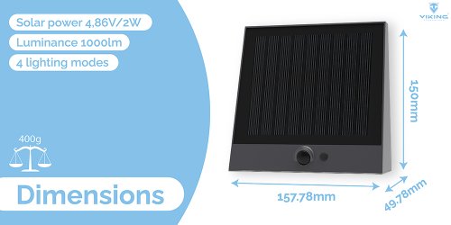 PIR senzor s úhlem detekce 120° má dosah až 5 metrů. Jakmile bude detekován pohyb, světlo se automaticky rozsvítí. Moderní a výkonný monokrystalický solární panel poskytuje vysoký nabíjecí výkon. Viking SR25 disponuje robustním provedením s certifikovaným stupněm odolnosti IP54.