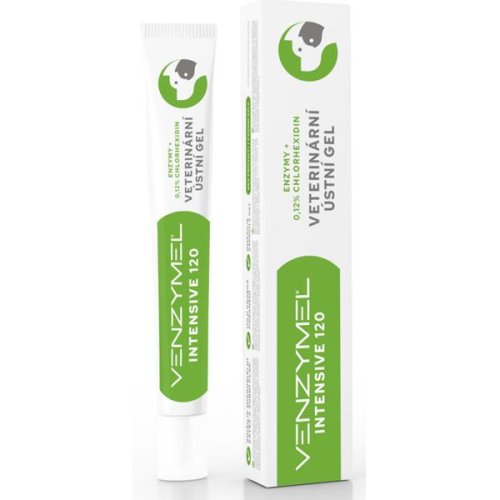 Venzymel Intensive 120 veterinární ústní gel obsahuje patentovanou směs proteolytických enzymů trypsinu a chymotrypsinu a chlorhexidinu diglukonátu v koncentraci 0,12 %.