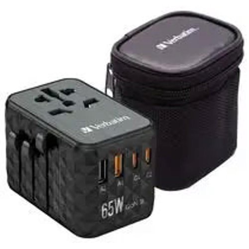 Univerzální adaptér Verbatim GaN III univerzální cestovní adaptér UTA-05, 2xUSB-C PD 65W a QC4+/2xUSB-A, černá
