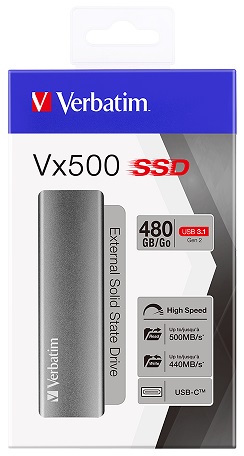 Verbatim Vx500 Externí SSD disk využívá vysokorychlostní flash paměť a řadič USB 3.1 Generation 2, optimalizované tak, aby poskytovaly bezkonkurenční výkon.