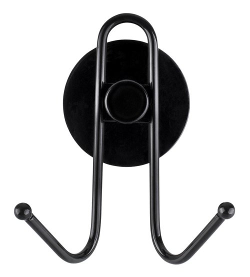 Malý koupelnový věšák se 2 háčky, který se snadno namontuje na 3M samolepicí pásku. Jeho nosnost je až 4 kg. Nástěnný věšák má jeden široký háček na zavěšení. Rozměry 7.3 x 4.5 x 9.4 cm. Balení na blistru. Materiál černě lakovaný drát. EAN 5905668550148