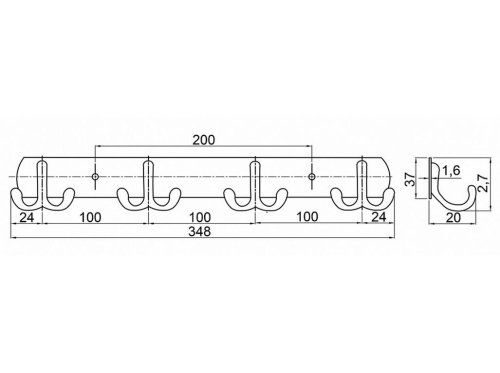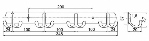 Věšák 4 x dvojháček CYRIL, Cr. balení obsahuje: - 1 x věšák - 2 x vrut - 2 x hmoždinka - 2 x krytka na vruty