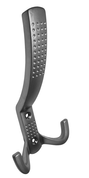 Celokovový šatní věšák z galvanicky pokovené slitiny zinku, k přišroubování na stěnu, dodávaný včetně vrutů.