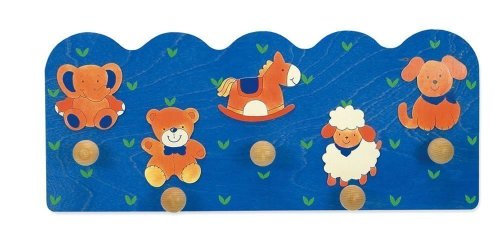 Dřevěný 50 cm dlouhý věšák s jemnými motivy zvířátek.S 5 úchyty.