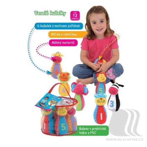 Každá kuželka vydává při pohybu zvuk, míček při pohybu cinká. Celkem se v balení nachází 6 kuželek a jeden míč.