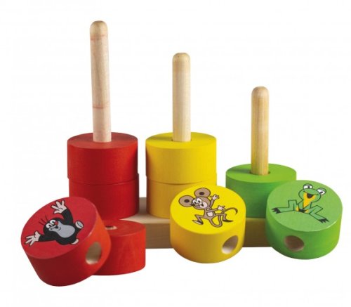 Veselé pyramidy se skládají z 12 navlékacích dílů a jednoho základního dílu se třemi tyčkami. Skládací pyramida pomáhá rozvíjet motoriku rukou a představivost dítěte. Výrobek splňuje požadavky EU na bezpečnost hraček. Rozměr balení: 18 x 15 x 5 cm Vhodné pro děti od 1 roku