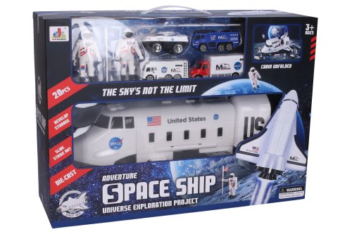 Vesmírná loď set. Obsahuje vesmírnou loď 36cm, 2x postavička 8cm, 4x auto, dopravní značky. Vesmírná loď je otevírací.