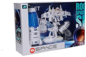 Vesmírný set s 2 figurkami. Velikost figurky 8 cm. Obsah - 2 figurky kosmonauta 8 cm, raketa 21 cm, družice, létající zařízení, 2 vznášedla, satelit, družice.